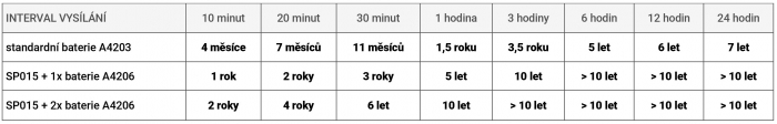 | battery holder (SP015) + 2x lithium battery A4206 - 8500mAh | 2 years | 4 years | 6 years | 10 years | > 10 years | > 10 years | > 10 years | > 10 years |